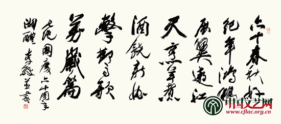 他把对党和军队的无限忠诚凝注笔端,用作品传递信仰和直抵心灵的力量。为向建党90周年献礼,他撰写长体诗赋《祖国万岁》,专门创作140余件书法作品,推出“我爱我的祖国展”,表达“我心向党、感恩祖国”的情怀,先后有30多万观众参观展览。