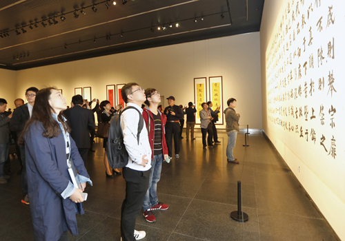 此次展览,共展出了孙伯翔先生新近创作的作品110幅,既有书法巨制,也有国画小品。书法以魏碑行楷为主,旁及草、隶、篆,风格迥异;国画则题材广泛,形式多样,清新雅逸,为观众奉献了一场极其丰盛的精神文化大餐。另外,《金陵问道——孙伯翔书法集》也于昨天在南京首发。