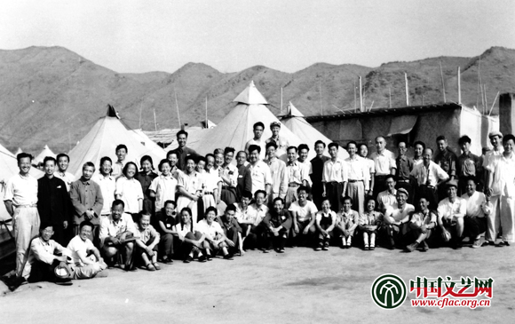 1958年5月,中国文联组织的一批文艺工作者,在十三陵水库工地劳动创作后合影