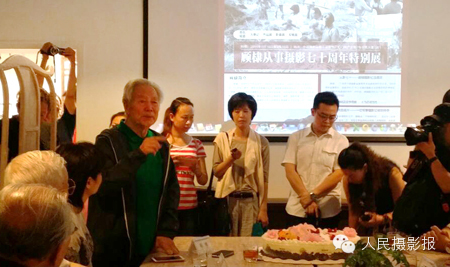 中国摄影家协会主席王瑶在展场将鲜花和祝福蛋糕送给顾老先生,并用震撼和感动来表达自己的感受,她说,作为中国革命摄影事业重要文献的开拓者、挖掘者、保护神和继承者,顾老先生70年的摄影历程中,笔耕、编著、拍摄不断,用青春年华和热血生命,为中国红色摄影史保存、挖掘了大量珍贵的历史资料,创造了人生多个新的奇迹。年轻摄影人应该从这个影展中,从老一辈摄影人身上汲取精神营养,学习他们的奋斗和奉献精神,并在今后的摄影事业中传承发扬光大。