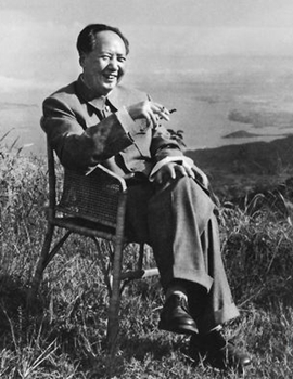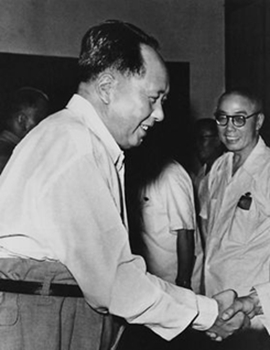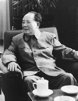 毛泽东和老舍(右一)、梅兰芳(右二)、田汉在一起