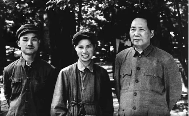 侯波(中)、徐肖冰夫妇与毛泽东合影