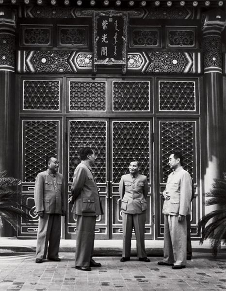 1954年作 毛泽东、朱德、周恩来、陈云在中南海紫光阁 侯波 摄