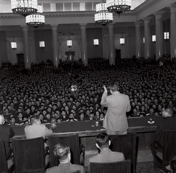 1957年作 毛泽东在莫斯科大学给中国留学生讲话 侯波 摄