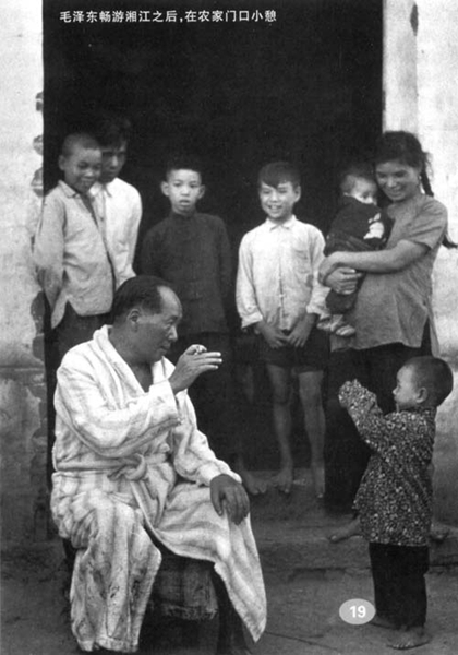 毛泽东畅游湘江之后,在农家门口小憩 侯波摄