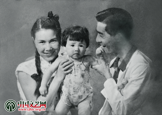 1937年初,父亲赵丹、母亲叶露茜与未满6个月的赵青合影