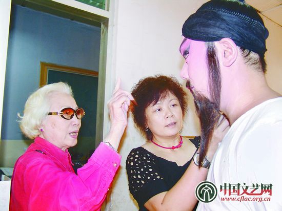2008年红线女在广东粤剧团演出现场指导青年演员