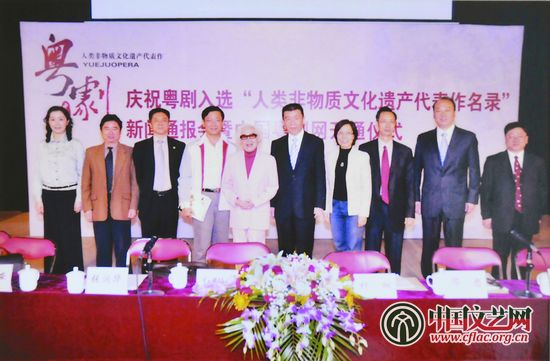 二○○九年红线女(左五)出席庆祝粤剧入选“人类非物质文化遗产代表作名录”新闻发布会暨中国粤剧网开通仪式