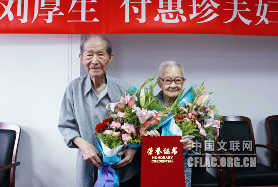 6月23日,刘厚生、傅惠珍夫妇向中国戏剧家协会捐款仪式在中国文艺家之家举行。图为刘厚生、傅惠珍夫妇在一起。中国文联网 余宁 摄