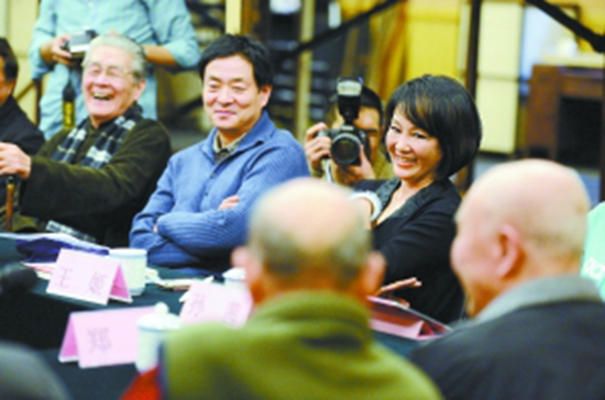 人艺一楼排练厅正是《甲子园》的排练场,去年七八月间这部戏就在这里酝酿、诞生。但这次大家不再是你来我往地对台词,而是像闲叙家常似的围成一圈坐在一起。今年整90岁的朱琳,不顾大家的劝阻,颤颤巍巍地非要站起来发言,“你们看我这样,真的是演不了戏了,今天我是来看大家的,也是来告别的。”平时总愿读几句诗的老人,又即兴地改了几句诗来鼓励年轻人,“人家都说‘长江后浪推前浪’,我要说‘长江后浪越前浪,一浪更比一浪高’!”