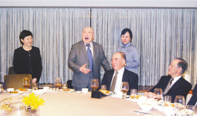 联谊中,尚长荣一段京剧《连环套》引起在座台湾朋友喝彩,郝柏村清唱京剧《空城计》孔明一段,字正腔圆,尚长荣立即清唱《空城计》马谡一段唱和。
