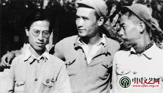 1940年于敏和好友田方(中)、王滨(右)在延安时合影