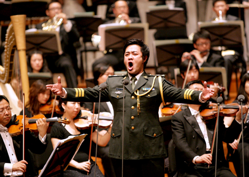 为向建党90周年献礼,5月23日,在毛泽东同志《在延安文艺座谈会上的讲话》发表69周年之际,由中国文联、解放军总政宣传部、中华海外联谊会、中国人民对外友好协会、中国音协主办的“理想之歌——傅庚辰作品音乐会”在国家大剧院举办。全国政协副主席、中国文联主席孙家正和中国文联党组书记赵实,中国文联党组副书记、副主席李屹,中国文联党组成员、副主席廖奔,中国文联党组成员、书记处书记夏潮,中国文联副主席丁荫楠、白淑湘、刘兰芳、李维康,中国音协名誉主席傅庚辰,主席赵季平,分党组书记、驻会副主席徐沛东等出席了音乐会。 “山下旌旗在望,山头鼓角相闻。敌军围困万千重,我自岿然不动”,大型声乐套曲《毛泽东之歌》是傅庚辰阅读了大量史料文献,精心构思,历时3个月完成的新作,包括毛泽东诗词《西江月·井冈山》《七律·长征》《十六字令三首》《忆秦娥·娄山关》《菩萨蛮·大柏地》《沁园春·雪》《七律·中国人民解放军占领南京》。此外,周恩来、朱德、董必武、陈毅、叶剑英、张爱萍等革命前辈的诗篇,也在傅庚辰谱写的动人旋律中呈现给观众。音乐会上还演唱了傅庚辰在不同历史时期创作的艺术精品,演奏了傅庚辰创作的脍炙人口的电影《闪闪的红星》选曲《映山红》,为庆祝2003年我国首次载人航天飞行成功而作的《航天之歌》和2004年为庆祝中国改革开放总设计师邓小平百年诞辰而作的《小平之歌》等。所有这些作品都充满了革命理想和浪漫情怀,忠实记录了时代车轮滚滚前行的轨迹,既是对宏大历史画卷的艺术再现,更是对老一辈革命家和当代共产党人崇高理想和信念的纵情歌唱。 |