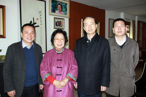 4月15日,是著名女高音歌唱家王昆的生日。中国文联党组成员、副主席左中一、中国文联办公厅副主任刘尚军等一行人看望了她,为她送去了生日蛋糕、鲜花和祝福,并祝愿她身体健康,艺术之树常青。图为合影。中国文艺网 丁薇 摄