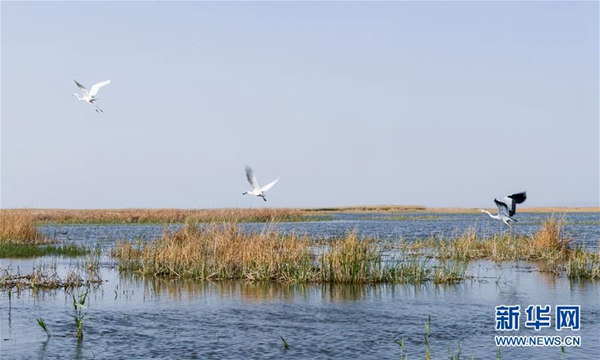 这是在内蒙古乌梁素海拍摄的候鸟(2018年5月12日摄)。新华社记者 刘磊 摄