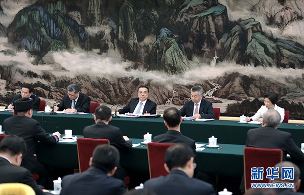 3月7日,中共中央政治局常委、国务院总理李克强参加十三届全国人大二次会议广东代表团的审议。 新华社记者 刘彬 摄