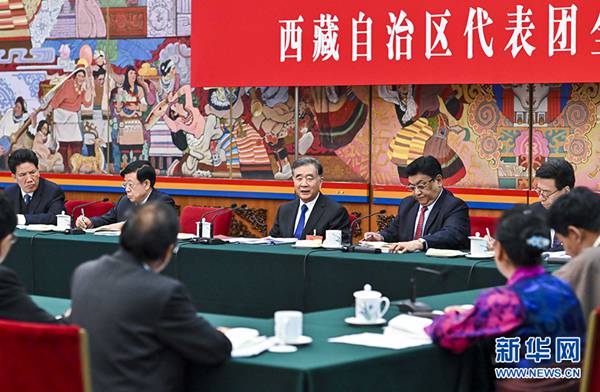 3月10日,中共中央政治局常委、全国政协主席汪洋参加十三届全国人大二次会议西藏代表团的审议。 新华社记者 李学仁 摄