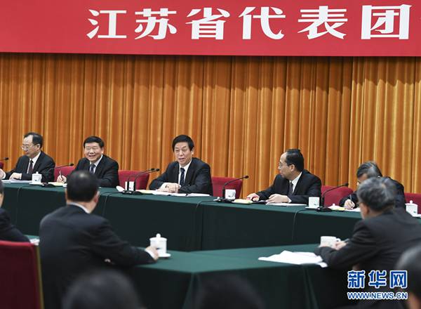 栗战书在江苏代表团参加审议。在认真听取娄勤俭、吴政隆、车捷等代表发言后,栗战书说,制定外商投资法是以习近平同志为核心的党中央确定的重大立法任务,充分彰显了党和人民在新时代将改革开放进行到底的坚定决心,宣示了我国奉行互利共赢开放战略、积极推动建设开放型世界经济的鲜明立场,有利于打造市场化、法治化、国际化的一流营商环境,为推动高水平对外开放提供更加有力的法治保障。希望江苏认真贯彻习近平总书记对江苏工作的重要指示要求,抓住实施长江经济带发展战略的机遇,大力推进高质量发展,实施乡村振兴战略,推动高水平对外开放,努力建设经济强、百姓富、环境美、社会文明程度高的新江苏。
