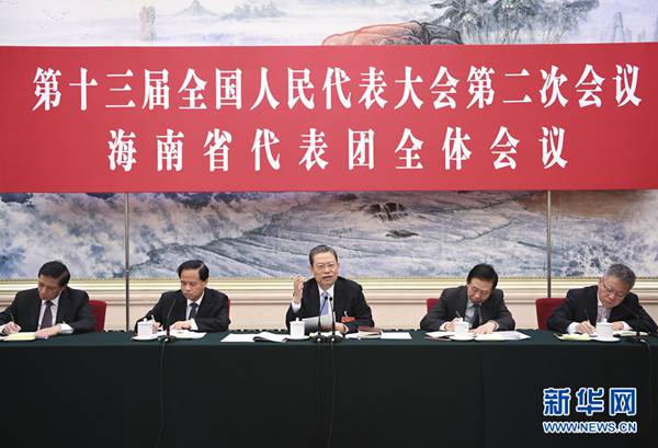 赵乐际在海南代表团参加审议。陈飘、邓小刚、杨莹等代表先后发言。赵乐际充分肯定海南工作取得的新成绩,希望海南深入学习贯彻习近平新时代中国特色社会主义思想,学习贯彻习近平总书记关于海南工作重要指示精神,牢牢把握党中央对海南在新一轮改革开放中的战略定位,用好用足机遇,大胆探索创新,凝心聚力、抓好落实,加快建设自由贸易试验区、探索建设中国特色自由贸易港,以实际行动践行“两个维护”,以新的更大成绩不负党中央重托。赵乐际说,深化国家监察体制改革是全面深化改革的重要内容,要把党内监督同国家机关监督、民主监督、司法监督、群众监督、舆论监督贯通起来,健全党和国家监督体系,以有力有效的监督保障各项任务落实。