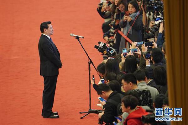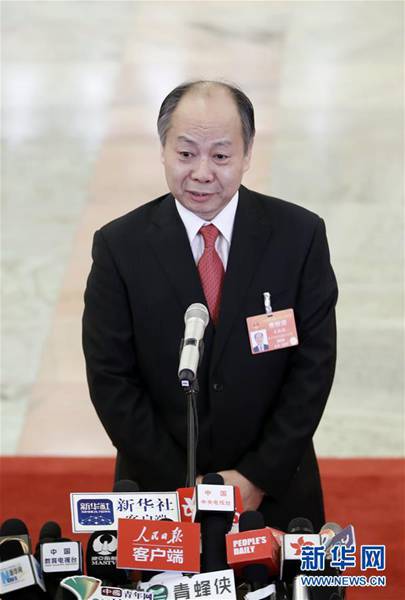 3月3日,中国人民政治协商会议第十三届全国委员会第二次会议在北京人民大会堂开幕。这是国家文物局局长刘玉珠在“部长通道”接受采访。 新华社记者 邢广利 摄