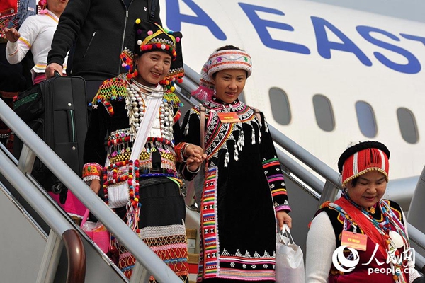 3月2日,出席十三届全国人大二次会议的云南代表团抵京。
