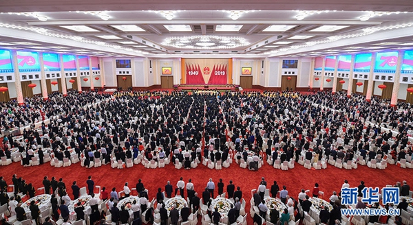 9月30日晚,庆祝中华人民共和国成立70周年招待会在北京人民大会堂隆重举行。 新华社记者 张领 摄