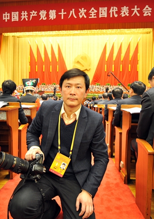 李舸在中国共产党第十八次全国代表大会上采访拍摄