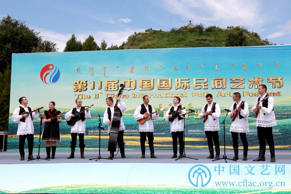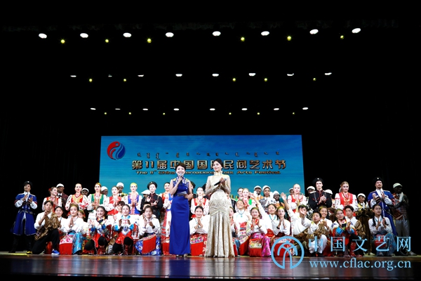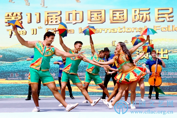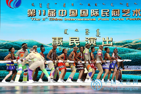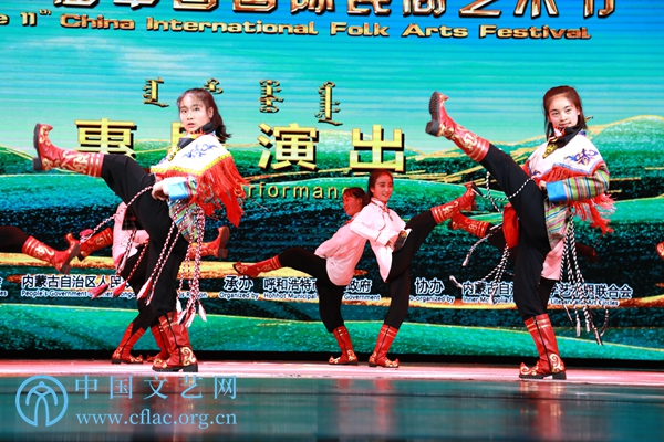 第11届中国国际民间艺术节举办期间,参演的中外艺术团在内蒙古呼和浩特多地开展巡演。图为民族剧院演出现场。中国文艺网 韩雪竹摄