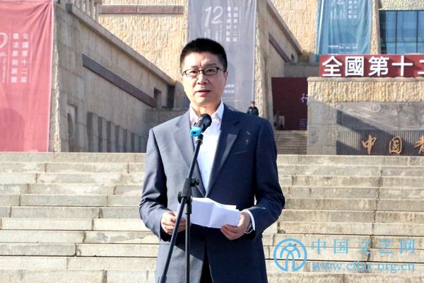 12月10日,全国第十二届书法篆刻展览行书草书展在陕西宝鸡开幕,图为陕西省委常委、宣传部部长牛一兵在开幕式上致辞。中国文艺网 高森摄