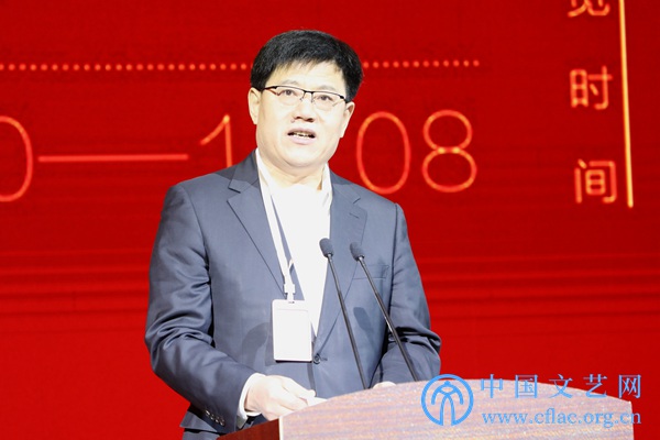 1110日,全国第十二届书法篆刻展览篆书篆刻刻字展在山东济南开幕。图为山东省文联党组书记、副主席王世农致欢迎词。 中国文艺网 韩雪竹 摄