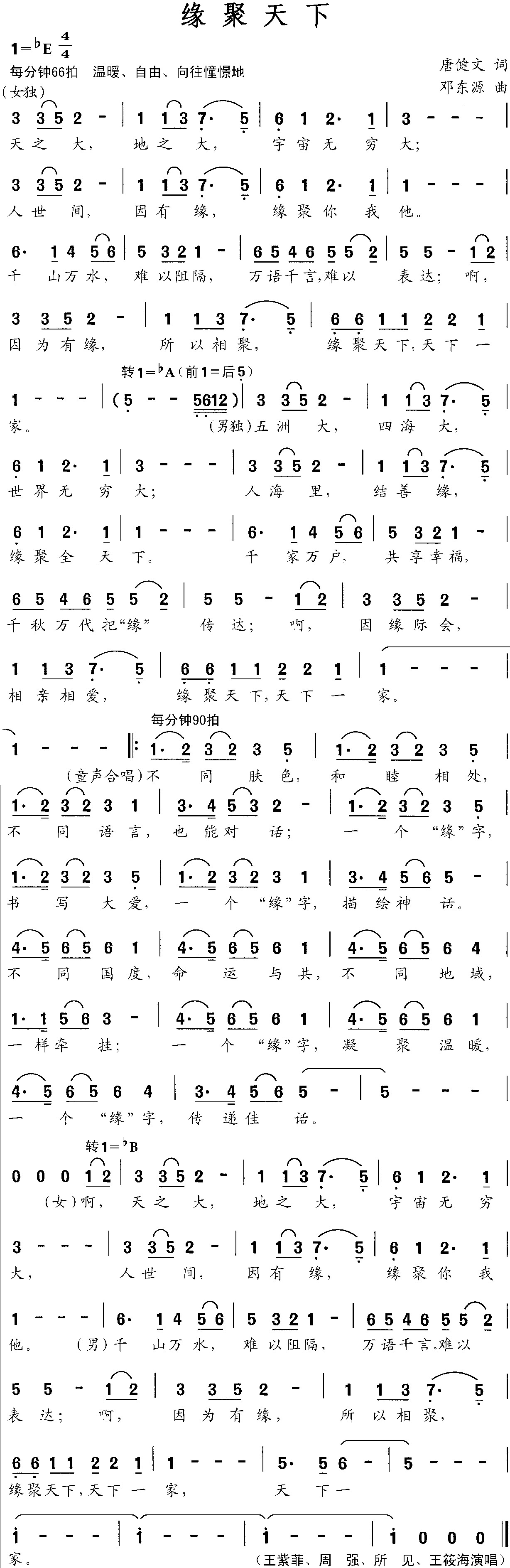 秉持“天下一家”理念,构建人类命运共同体。歌曲《缘聚天下》正是在目前的大环境、大背景下诞生的。该曲由湖南省文联组织推出,是专门为“一带一路”重大活动而打造的主题性歌曲。2018年11月,该曲由俄罗斯艺术家用俄文、中文、英文三个版本在活动中演唱;2018年11月29日晚在深圳“亚洲年度音乐盛典”音乐会上,该曲被选做主题歌艺术呈现;在2018年中国(深圳)文博会上,该曲被选做形象歌曲播放。