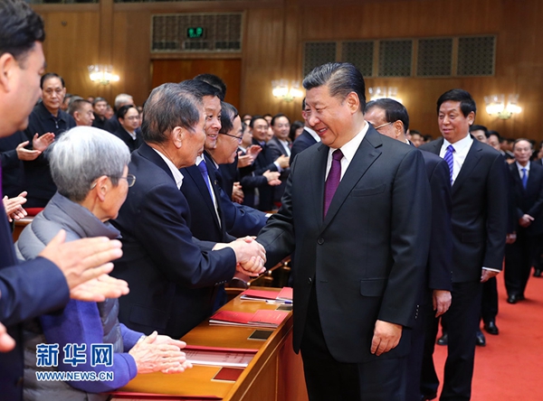 12月14日,庆祝改革开放40周年文艺晚会《我们的四十年》在北京人民大会堂举行。习近平、李克强、栗战书、汪洋、王沪宁、韩正、王岐山等党和国家领导人,与3000多名观众一起观看演出。 新华社记者 谢环驰 摄