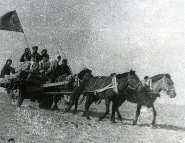 第一支乌兰牧骑队驾着马车,前往牧区演出。(照片由内蒙古苏尼特右旗乌兰牧骑提供)