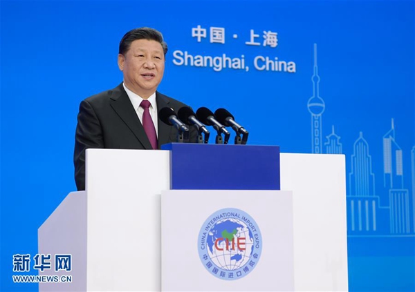2018年11月5日,首届中国国际进口博览会在上海开幕。国家主席习近平出席开幕式并发表题为《共建创新包容的开放型世界经济》的主旨演讲。 新华社记者 李学仁 摄