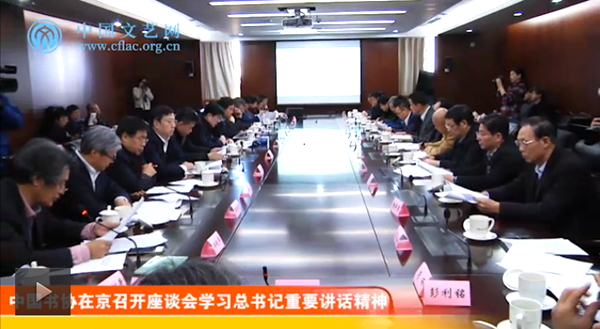 3月15日,中国书协在京召开学习习近平总书记看望参加全国政协十三届二次会议的文艺界社科界委员时的重要讲话精神座谈会。中国书协部分主席团成员、理事、委员会负责人或代表、中国书协机关代表、新文艺群体书法工作者代表等参加会议。中国文联党组书记、副主席李屹出席会议并讲话。中国书协主席苏士澍出席会议。会议由中国书协分党组书记、驻会副主席陈洪武主持。