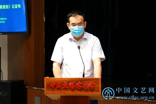 6月30日,《2019中国艺术发展报告》在京举行云发布仪式。图为《2019中国艺术发展报告》主编、中国文联理论研究室副主任徐粤春主持会议。中国文艺网 魏康奇 摄