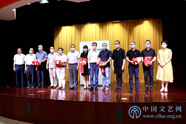 6月30日,《2019中国艺术发展报告》在京举行云发布仪式。图为中国文联党组成员、书记处书记董耀鹏和相关单位领导一同为图书馆、学者和读者代表赠书。中国文艺网 魏康奇 摄
