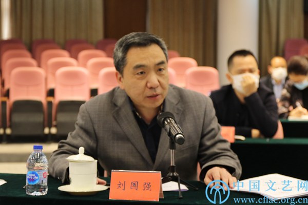 4月12日,中国文联党史学习教育领导小组召开“我为群众办实事”实践活动研究部署会。图为中国文联机关党委常务副书记刘国强传达《“我为群众办实事”实践活动工作方案》。