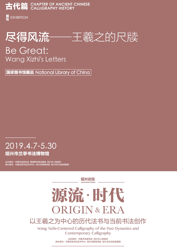为贯彻落实习近平总书记关于文艺工作的重要论述和指示精神,坚守中华文化立场,传承中华文化基因,弘扬中国精神,凝聚中国力量,繁荣文艺创作,增进文化自信,引导广大书家和书法工作者自觉担负起“以文化人、以文育人、以文培元”的使命,中国书法家协会于2019年4至5月在绍兴市举办“源流·时代——以王羲之为中心的历代法书与当前书法创作”暨“绍兴论坛”学术主题系列活动。