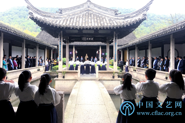 4月10日,在绍兴市第三十五届兰亭书法节开幕之际,“源流·时代——以王羲之为中心的历代法书与当前书法创作”(古代篇)之“尽得风流——王羲之的尺牍”与“荣擢百代——王羲之的谱系”正式对观众开放。图为开幕式现场。中国文艺网 韩雪竹摄