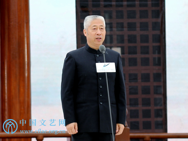 4月10日,在绍兴市第三十五届兰亭书法节开幕之际,“源流·时代——以王羲之为中心的历代法书与当前书法创作”(古代篇)之“尽得风流——王羲之的尺牍”与“荣擢百代——王羲之的谱系”正式对观众开放。图为中国书协分党组书记、驻会副主席陈洪武在开幕式上致辞。中国文艺网 韩雪竹摄