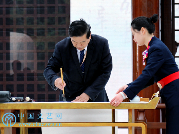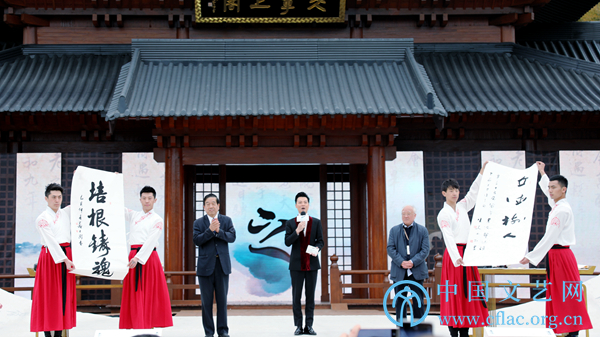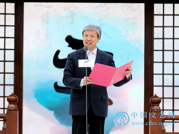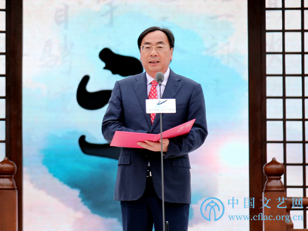 4月10日,在绍兴市第三十五届兰亭书法节开幕之际,“源流·时代——以王羲之为中心的历代法书与当前书法创作”(古代篇)之“尽得风流——王羲之的尺牍”与“荣擢百代——王羲之的谱系”正式对观众开放。图为浙江省政协副主席张泽熙宣布书法节开幕。中国文艺网 韩雪竹摄