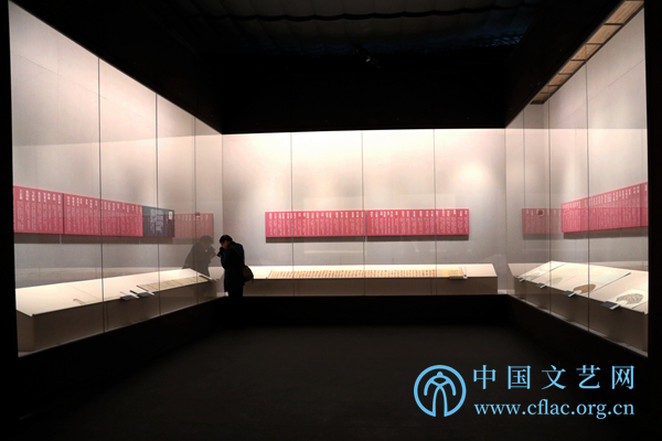 4月10日,在绍兴市第三十五届兰亭书法节开幕之际,“源流·时代——以王羲之为中心的历代法书与当前书法创作”(古代篇)之“尽得风流——王羲之的尺牍”与“荣擢百代——王羲之的谱系”正式对观众开放。图为活动现场。中国文艺网 韩雪竹摄