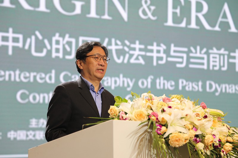5月25日至26日,“绍兴论坛——从源流·时代到十二届国展”举办,图为第四场“思辨与追问”主持人陈振濂。中国文艺网 高森摄
