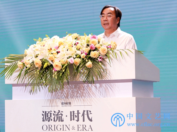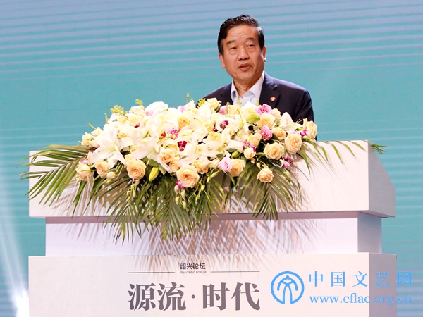 5月25日,“源流·时代”以王羲之为中心的历代法书与当前书法创作暨绍兴论坛开幕,图为中国文联党组书记、副主席李屹在开幕式上致辞。中国文艺网 韩雪竹摄