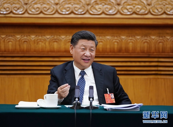 5月24日,中共中央总书记、国家主席、中央军委主席习近平参加十三届全国人大三次会议湖北代表团的审议。 新华社记者 黄敬文 摄