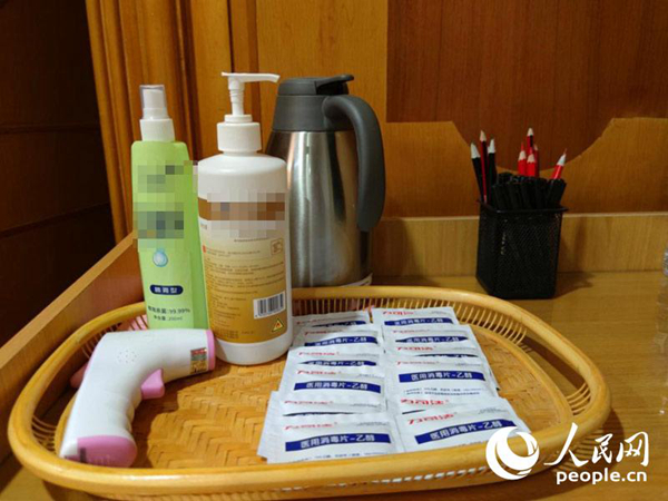 记者看到,友谊饭店在驻地设置了消毒用品,电梯里也设置一些防疫措施。在驻地还设置了垃圾分类宣传电子栏。