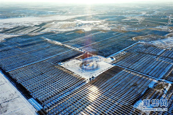 这是河北省张北县德胜村光伏电站(2020年1月3日摄,无人机照片)。 新华社记者 牟宇 摄