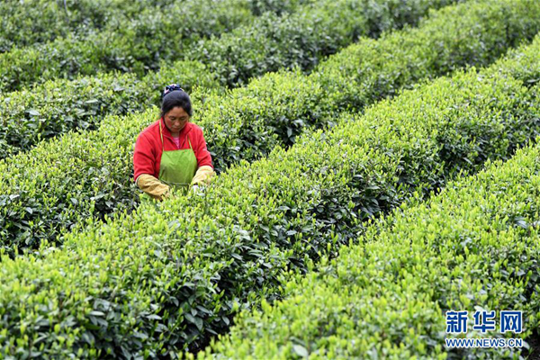 合作社社员在福建省寿宁县下党乡下党村采茶(2020年4月9日摄)。 新华社记者 林善传 摄