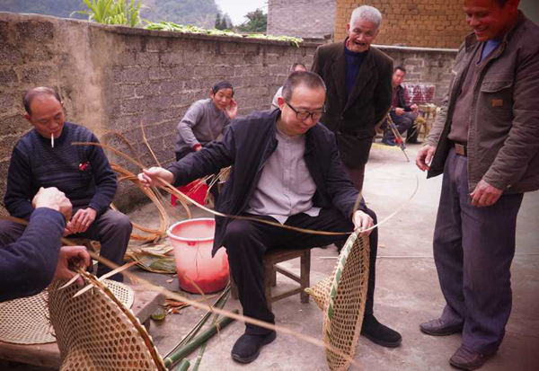 潘鲁生委员在广西昭平调研民间竹编工艺(李舸摄影)